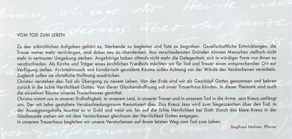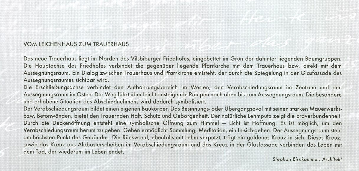 ![]() Neubau Trauerhaus im Friedhof Vilsbiburg Einweihung des neuen Trauerhauses am 09.07.2010 Baubeginn: 2009 Baufertigstellung: Juli 2010 Bauherr: Pfarrkirchenstiftung Vilsbiburg, Kirchstr. 15, 84137 Vilsbiburg, www.pfarrei-vilsbiburg.de Architekt: Stefan Birnkammer, Herrnfeldener Str. 13, 84137 Vilsbiburg, Elektroprojektant: Ing. Hans Ossner, Hackelsberg 2, 84149 Velden Elektroarbeiten: Der Hammer! ![]() ![]() ![]() ![]() ![]() ![]() |
